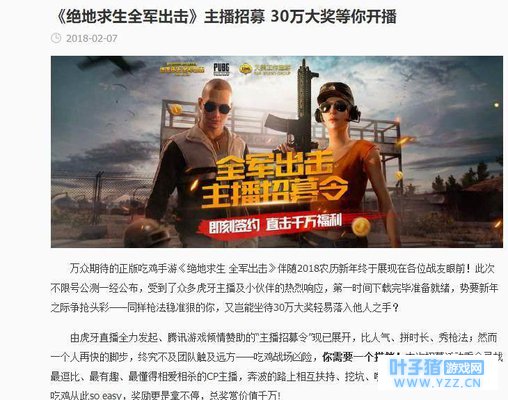 该游戏与虎牙直播联合,在新的一年里,为了给直播间小伙伴们带来福利,也希望各位主播的直播事业能够红红火火。全军出击斥巨资寻找吃鸡车队,带粉赢奖励。