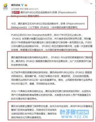新春特辑就到这里啦!可能有很多重要的事情没有放出来,也希望大家积极的为我们提供意见或建议哦~新的一年我们将做得更好!再次感谢小伙伴们长期以来的支持,最后祝大家春节快乐!大吉大利~ 如果说国服的代理权被腾讯成功的拿下要感谢的一批人,那应该就是“外挂”。因为他们的各种外挂让蓝洞只能各种更新“反外挂”的补丁,然而,外挂依旧!面对中国这个庞大的“吃鸡市场”绝地求生是不愿意放弃的这一块“蛋糕”。 几个月前,蓝洞与腾讯达成了合作,腾讯成为了绝地求生国服代理商,并且从蓝洞哪里拿到了授权,让旗下天美、光子两大王牌工作室着手开发绝地求生手游,两款打着正版授权大旗的手游,还未上线便已经吸足了人气,官网预约人数达到了上千万之巨。