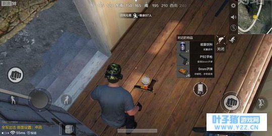 降落之后就是找房子给自己拾取战场所需要的武器和医疗物品。当物资拾取比较多,背包会装不下,不能拾取其它资源,可以把背包打开,没用的东西丢掉。防弹衣也会增加储物容量,防弹衣等级越高增加的储物容量也越多。