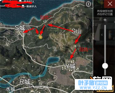 但是S山真的有这么不堪吗?非也!S山的资源其实还是比较富足的,枪械、倍镜配件以及药物也是不会让玩家失望的。因此打野是个好去处。今天小编就带大家整理下S山的一些打野思路。 降落点选择 在有别的玩家和你同时降落时,小编建议降落点选择在S山左侧,因为这里不论是三个小厂房还是卫星楼相对右侧房区来说资源是相对密集的,且容易搜寻,保证领先拿到枪械终结对方。