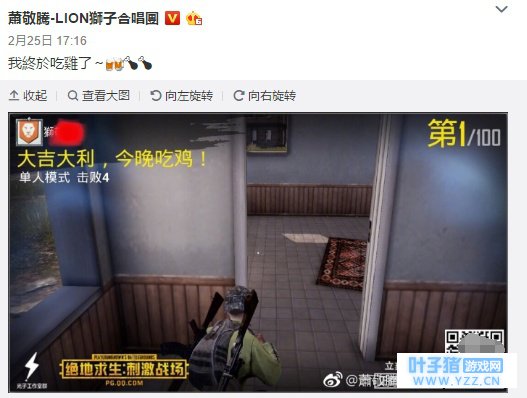 绝地求生:明星萧敬腾晒吃鸡战绩,刺激战场已经赢了全军出击?