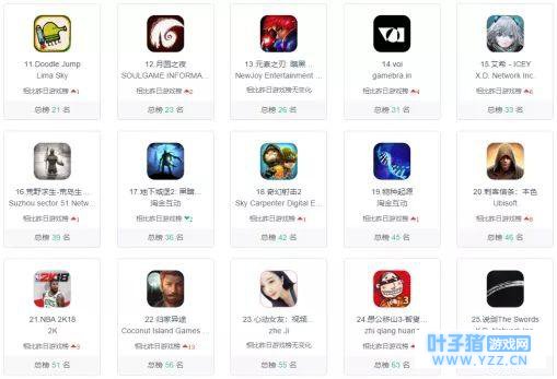 TOP30依然是品质老游戏的主场,并且重度游戏占绝大多数。目前《Doodle Jump》排名第11,《月圆之夜》排名第12,《元素之刃》排名第13,《voi》排名第14,《艾希》排名第15。其余游戏如《荒野求生》《地下城堡2:黑暗觉醒》《奇幻射击2》等排名同样十分稳定。目前付费榜新游突围的几率很小,春节期间,付费榜不少游戏都有优惠活动。但整体排名变动不大。