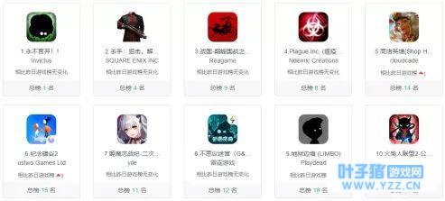 近一个月,付费榜固化现象非常明显,几乎没有新游的身影,老游戏占据版的前列,目前TOP10之中,《永不言弃!!》位居榜首,《杀手:狙击》排名第2,《战国》排名第3,《Plague Inc.》排名第4,《商店英雄》排名第5。其他游戏如《纪念碑谷2》《姬魔恋战纪》《不思议迷宫》等排名十分稳定。目前《纪念碑谷2》同样在苹果推荐的人气游戏专栏中。