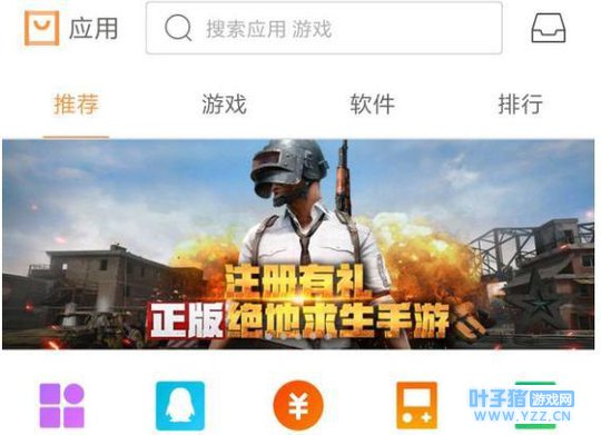PS.如果你那里没有应用,就点击游戏,然后首页就看到了置顶的吃鸡手游广告。