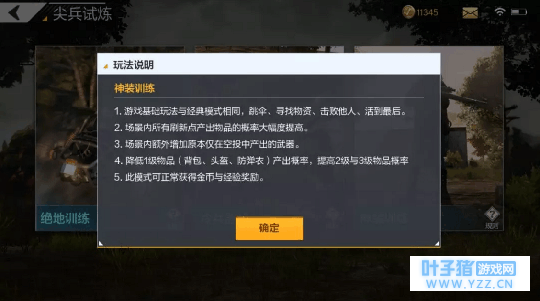 神装训练 :场景刷新点大几率出现空投稀有物品,3级装备大几率产出。这个模式旨在让各大玩家都能体会全身神装的感觉。