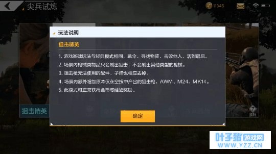 4大新玩法限时开放 4大新玩法分别为: 狙击精英、绝地训练、冷兵器战和神装训练。 虽然说是新玩法,但其实和经典的吃鸡玩法只是换汤不换药,内容上只是稍作更改而已,最后胜利依然是一人,大吉大利,晚上吃鸡。 狙击精英 :武器地图只刷狙击枪(AWM、M24、MK14),没有子弹,无法使用配件。喜欢的打狙击的小伙伴可以大显身手。