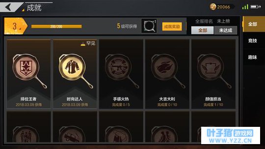 就游戏趣味性方面来说,新增的成就系统也是非常酷炫的。目前,游戏面板会将成就分为竞技和趣味两大项,每一项成就又根据玩家的完成度进行了铜牌、银牌、金牌三个等级的划分,整日整夜的吃鸡有什么意思?就是冲着排位王者这个金锅,迷妹也会努力的~