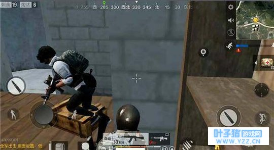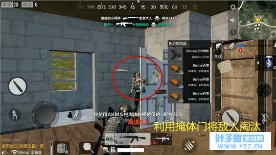 一般情况下敌人开门都会消耗短暂的时间,此时我们就能立刻反应过来,率先瞄准敌人的出场地点,敌人一旦出现就对其展开集火攻击。由于AKM步枪伤害较高,且射速较快,此时用于防御来说倒是不错的选择。 【躲在死角处的细节】