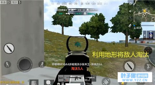 小伙伴们驾驶载具来到这里的时候,我们就可以把载具停放在附近山坡比较显眼的地方,且在我们的桥头堡窗口视野范围内。如果有敌人想要驾驶载具的话,必然会向其靠近,那么就会发生上图所示的情况,迅速开镜将其瞄准,在敌人尚未找到我们位置之前,3-4发的点射攻击就可以轻松将其带走。尽管敌人的全部物资都变成了小盒子,不过那里未免太过空旷,如果去拾取物资的话,有很大概率被敌人埋伏,所以不建议大家前往,继续躲在桥头堡防御即可。 【以守为攻战术的实战应用】