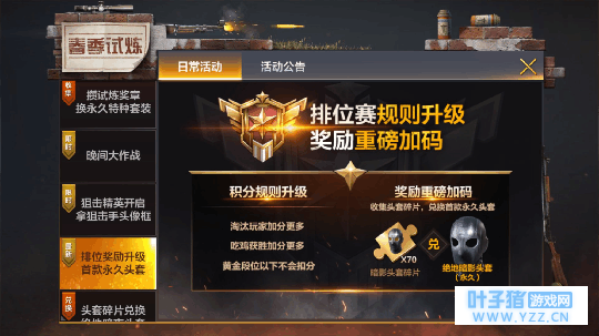 并且更新了一波优质活动,还开通了游戏成长历程奖励,具体如下: 春季试炼版本中,新增的系统成长历程代替了原有的升级奖励,后续游戏内升级获取的奖励将迁移到成长历程系统中发放;若鸡友们原本已经领取过各等级的升级奖励,在成长历程中该等级对应的金币奖励江默认为以领取。 此外为迎接新版本,在成长历程系统中对应的4/9/12/16四个等级奖励中各添加一键永久限定时装。已经达到对应等级的玩家,该奖励将陆续以邮件的方式发送到您的邮箱,清尚未满足等级的鸡友们快去升级吧。 以上便是系统对升级奖励的更新。并且天美还提到,模拟器玩家更新后只能匹配到模拟器玩家,不能再匹配到手游玩家了,这也是为了游戏的公平。