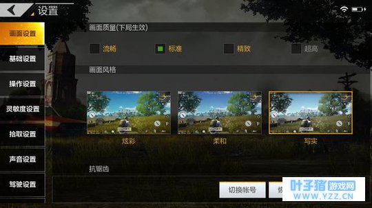 新画质——精致、写实,全新画质选项画面设置选项丰富,增加“精致”画质和“写实”画风等选项功能。小编的手机比较垃圾,不能选精致。