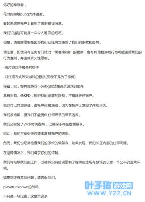 而且有意思的是,这位主播在向绝地求生这款游戏的厂商申述后,却得到了蓝洞这样的回应。(由于回应内容为英文版本,为了方便各位玩家观看,小编找到了中文版的翻译结果)