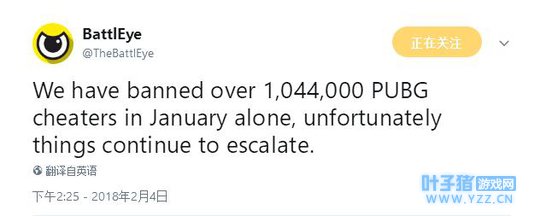 《绝地求生》1月封禁104.4万作弊账号|良风有信