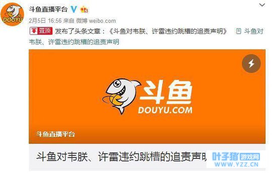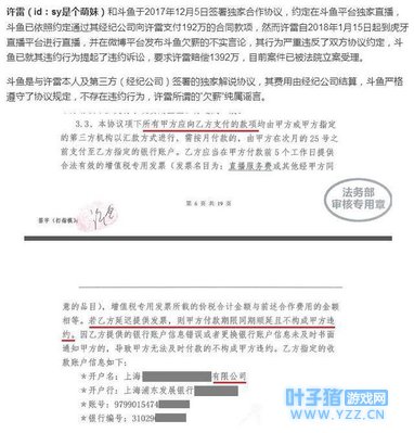 偏偏祸不单行,SY是个萌妹也就是许雷的老东家斗鱼发表了追责声明,就其违约跳槽行为提起了诉讼,要求其赔偿1392万,目前法院已立案受理了。