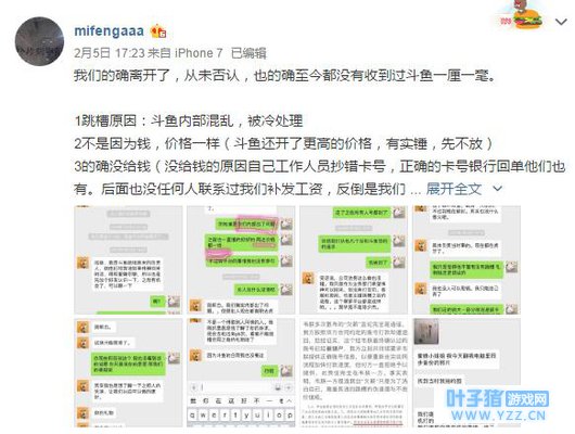 随后有网友翻出韦神女友的聊天记录,但是韦神提供给斗鱼的工资卡是大学就已经注销了的卡,作为韦神的经纪人,韦神女友给斗鱼提供一个早已注销了的账号居心何在,如果打官司,账号被注销打款失败了,按说韦神该及时更正账号错误信息的