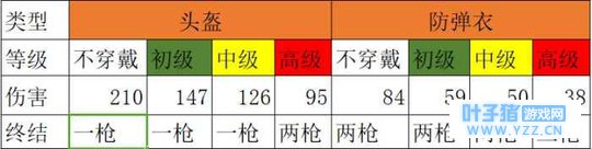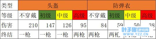 再来看AWM在各等级防具的保护下的伤害以及终结敌人需要的枪数。