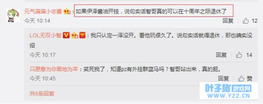 有人开玩笑回应小智: 如果一泽开挂,说句实话智哥可以在十周年之际退休了!