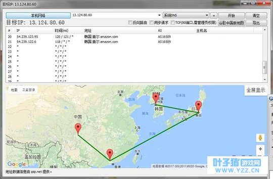看了上面这张图 我想大家都明白 延迟和带宽是没有关系的! 网连接游戏比作一条道路,从用户电脑到游戏服务器所经历的时间就是延迟。 用户电脑到游戏服务器的距离走向,遵循一个基本原则 国内:局域网->城域网->骨干网->城域网->局域网 出国:局域网->城域网->骨干网->国际出口->国际骨干线路->国际出口->X国骨干网->X国城域网->游戏服务器机房 绝地求生亚服韩国,国内除北方用户以外一般南方用户连韩国都是广州-日本-韩国。 下面我发一张路由追踪图