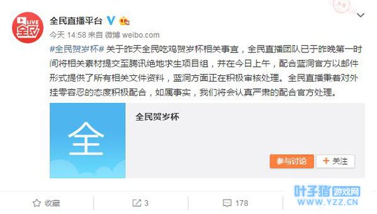 目前@全民直播平台 官方已发表微博表示将公布四位选手的房间号和常用游戏账号ID,以及本场比赛第一人称视角的录像和游戏中的Replay,欢迎大家查证,并绝对会进行公证的处理。 全民吃鸡贺岁杯中质疑QMTV战队开挂事件,全民直播平台将公布四位选手的房间号和常用游戏账号ID,以及本场比赛第一人称视角的录像和游戏中的Replay,欢迎所有选手及粉丝们观看查证,如果有实锤证据,全民直播平台绝对会进行公证的处理!