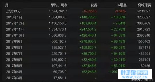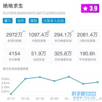 通过这些数据可以明显的看到,绝地求生近期在线人数和增长人数有明显的下滑。在这个国内学生玩家都是放假的时候,这个数据对绝地求生来说明显不是一个好消息。 |