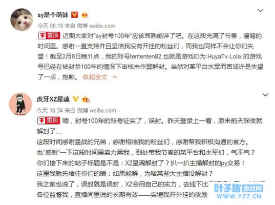 不过在最近,这两位主播纷纷在微博发文称自己被封100年的账号已经被解封了,从他们提供截图来看,账号确实已被解封。但还是有网友认为解封这件事情并没有这么简单,或许背后还存在一些不为人知的交易而已。