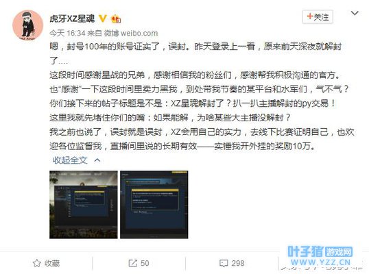 就在前几日,虎牙主播sy和星魂纷纷在直播中先后被封号100年,并且sy作为4AM的替补队员,在向蓝洞申诉竟然遭遇驳回。在这样的情况下,不少水军蠢蠢欲动,表示两人已经实锤在游戏中开挂,结果今日凌晨时分sy就在微博宣布账号已经解封,随后下午星魂也紧跟脚步表示账号也已解封。