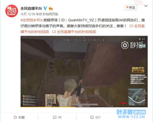 在昨天的绝地求生全民贺岁杯吃鸡赛中,全民队伍疑似开透视和自瞄挂,导致80%的职业战队提前退赛。关于各种针对全民队伍的负面资讯暴涨。 现在最大的影响是全民伊泽AK20发灭队VG,疑似自瞄和透视的一点,虽说VG是全队裸装短时间没有移动,但是不足以全面否定开挂的嫌疑。小智微博发文。