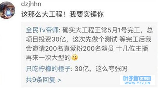帝师目前在微博中表示了,目前前几天直播都只是小工程,后续还会有更多的工程,三十个亿的投资到底会带给我们怎样的直播观影盛宴?对帝师的这波“秀”又会怎样去秀?让我们拭目以待吧! |