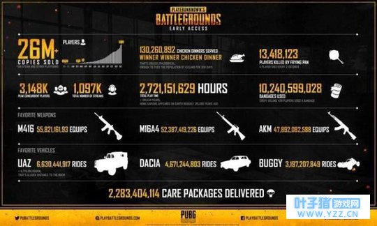 绝地求生大数据:游戏总时长超31万年,1300万人倒在平底锅之下!