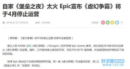 比如画面风格都还不错的第三人称MOBA游戏《虚幻争霸》被其开发商EPIC GAMES宣布,国际服将在2018年4月停止运营虚幻原厂EPIC手上的《虚幻争霸》。