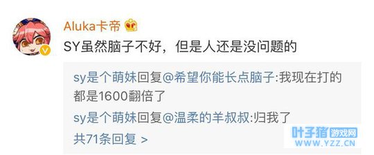 解说小楼称sy虽然长得不好,但是打游戏还可以的。