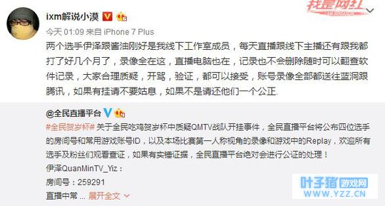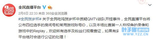 各大战队退赛 随后面对质疑,全民平台发布了所有选手的第一视角视频,并表示已经将所有素材提供至腾讯和蓝洞协助调查。面对各方质疑,小智小漠也纷纷发声,表示如果有实锤请死锤,如果没有请还他们清白。