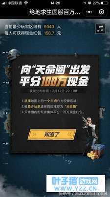 至于本次活动也十分有趣,规则如下:玩家在国服地图中选择一个地点作为自己的着陆点,点击确认降落后此地点则为自己预测的“天命圈”,直至2月12好22点截止在所有区域中被玩家选取最少的则判定为“天命圈”,所有选择了此区域的玩家将会平分高达百万的奖金。