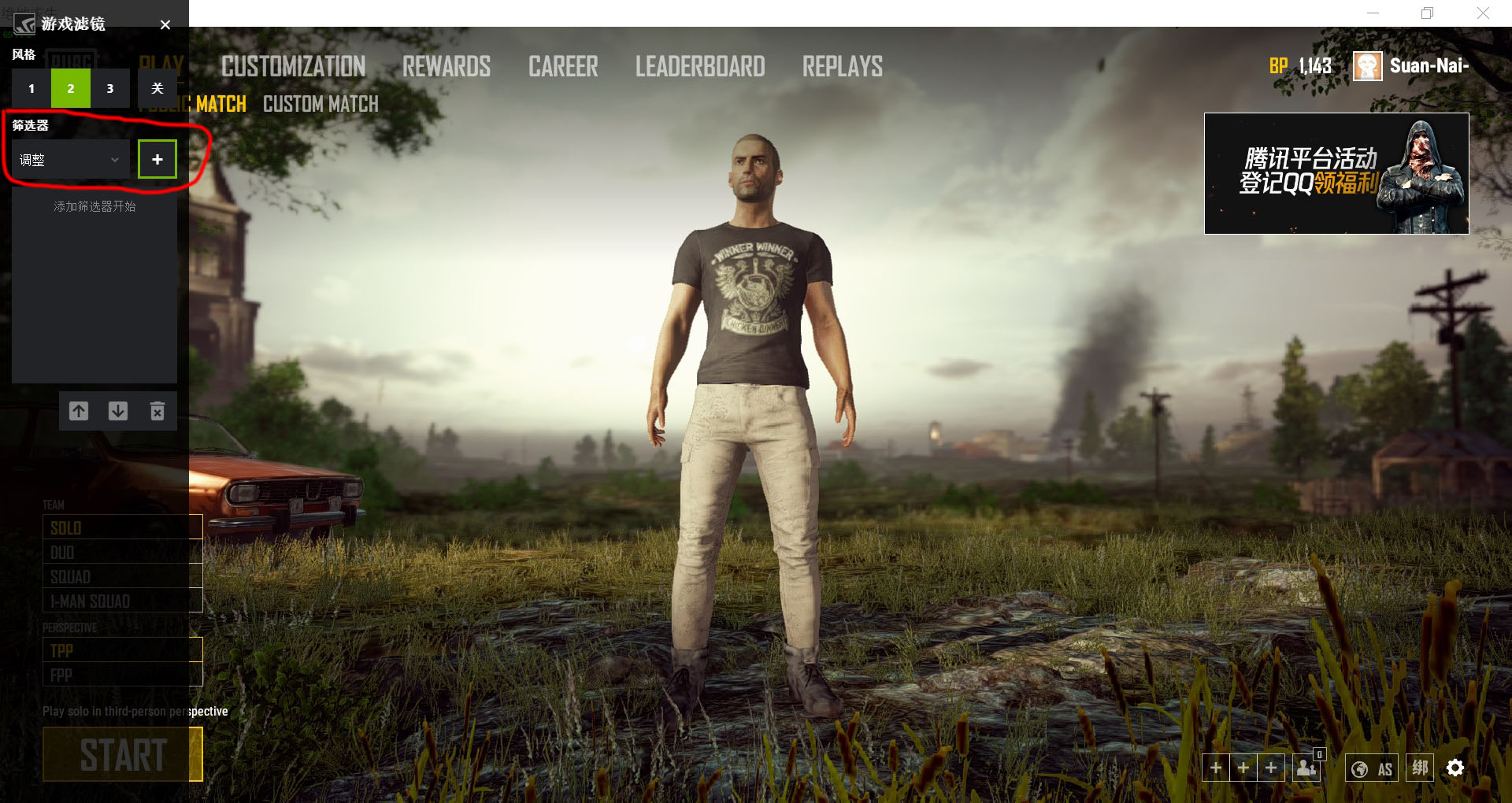 按下Alt+Z可呼出 3. 启用"游戏滤镜"打开绝地求生,按下 Alt+Z 选择 "游戏滤镜" ,或者直接按下 Alt+F3 。 默认有3个配置文件,这里以第2个为例。筛选器选择 "调整" ,点击旁边的 "+"