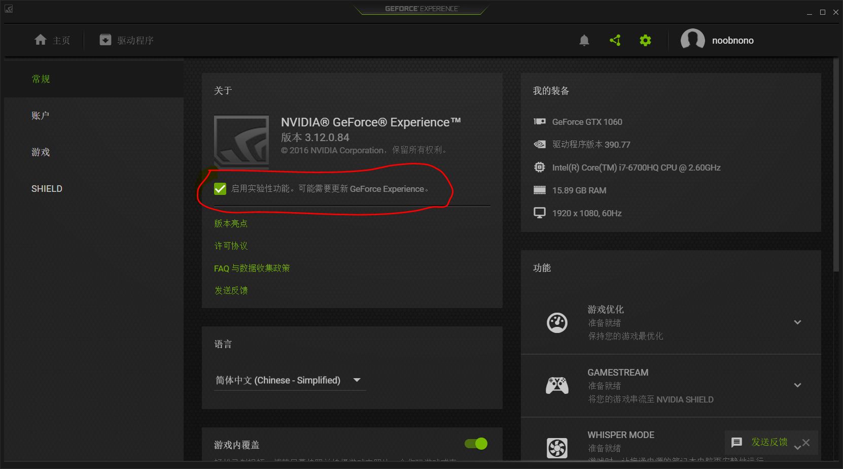 reshade被禁止使用 虽然reshade现在不能用了,但是我们可以使用 Geforce Experience 的 "游戏滤镜" 功能来增强吃鸡画质。 1. 安装 Geforce Experience下载地址: http://www.geforce.cn/geforce-experience/download 2. 启用"实验性功能"点击" 设置(小齿轮)"