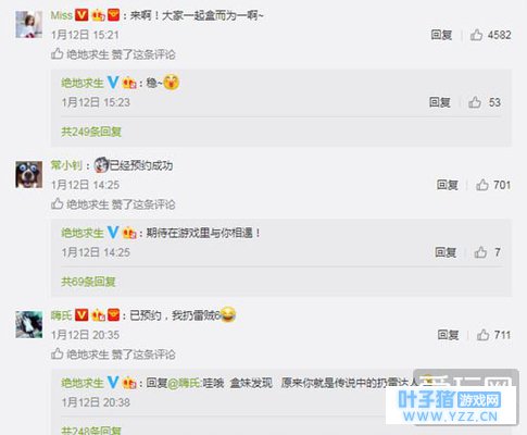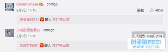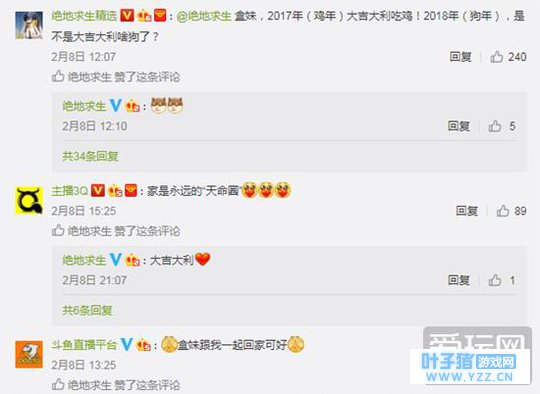 而腾讯微博下方,则显得一片平和,玩家各种温柔与鼓励:“盒妹,2017年(鸡年)大吉大利吃鸡!”、“盒妹,以后开国服一起啊,看看你技术咋样”、“盒妹跟我一起回家可好”。