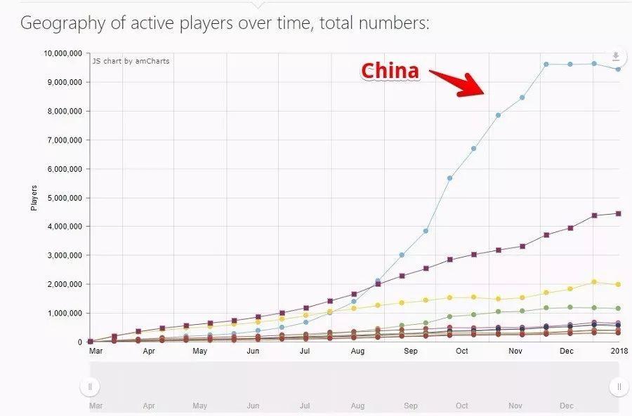 SteamSpy官方推特在2月1日的时候发布了一则有关Steam版《绝地求生》的数据图表。该图表分别从时间与地区2个维度对游戏活跃玩家进行了分析。从图中不难看出,《绝地求生》的中国活跃玩家的增长速度渐缓。