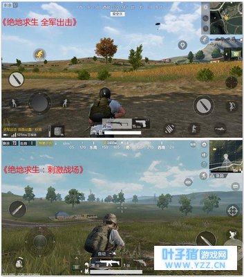PS:两款《绝地求生》手游都提供画质和帧率的调试选项,其中《刺激战场》的帧数设置能够立即生效,而《全军出击》则需要等到下一局才能更新设置。 游戏操作对于手游来说,画质固然重要,但操作的便捷性才是制胜关键! 无论是《全军出击》还是《刺激战场》,操作界面都是大同小异,屏幕左边是虚拟摇杆,右边则是射击、填弹、开镜、蹲下、躺下、跳跃等常用操作;中间则是武器快速切换和玩家血槽等。两款游戏都加入了诸如自动捡取、自动行走等功能,这也算是吃鸡手游界的标配了吧。此外两款正版《绝地求生》都提供了丰富的可定制选项。