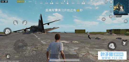 整体游戏操作界面 对了,这里要表扬一下企鹅,我玩其他吃鸡手游,落地总会莫名卡一下,这个游戏竟然没有,落地到加速奔跑跟端游一样丝滑流畅!!正版就是正版啊!!我第三次感叹有钱就是牛X!整体的操作界面呢,基本上是吃鸡手游传统风格了,也会自动捡东西的,这点对于我这种看不清平底锅还是背包的人来说,真是福利哦!远处的房子,嗯??这房子有点简陋啊!不过整体的颜色倒还是舒服的,算及格吧!