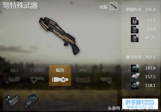3.十字弩是绝地求生中最独特的一个武器了,因为这把武器无论从伤害还是使用都是非常的特殊的,首先就是伤害,和AWM一样,能够一发3级头盔秒杀,伤害爆表,但是射击非常不容易控制,上弹的速度也是非常的慢,需要非常奥的射击的技巧,这把武器只能装配红点和全息的镜子,要是能够装备高倍的镜子,还自带消音的特性,谁还会使用狙击枪呢? |