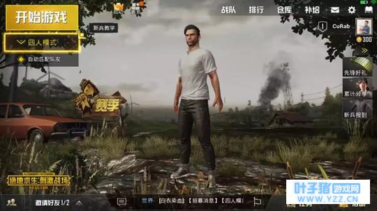 角色创建完成后来到主界面,《刺激战场》的主界面布局依然是和《绝地求生》十分相似,左边功能区选择游戏模式;排行榜、个人信息等被摆放在画面上方,整体色调如出一辙,区别在于画面背景略有不同,但标志性左侧轿车和右侧黑烟得到还原。