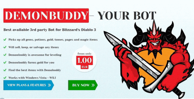 Demonbuddy,可以理解为「恶魔兄弟」, 它成功地延续了以往Bossland的外挂风格, 只需一键即可自动打怪、刷钱、拾取等。