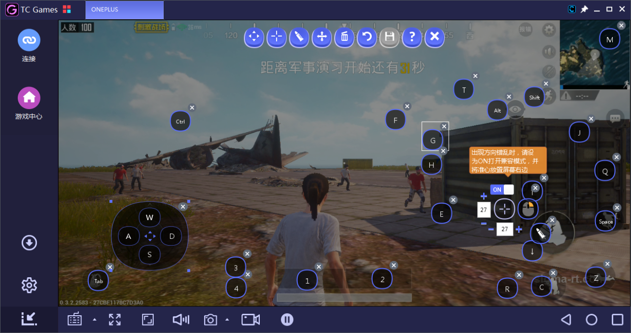 tcgames电脑玩手游助手 分享下个人用的键位,参考了他们软件他们的默认按键,做了一些调整。