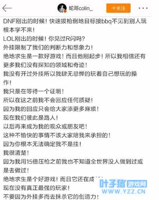 而发明家则是蛇哥自称的。当初十五倍跟车压枪惊为天人,让不少人强烈质疑是外挂,之后蛇哥发微博称:“DNF刚出的时候!快速拔枪倒地目标接bbq不见到别人玩根本学不来!LOL刚出的时候!你见过R闪吗?外挂限制了我们的判断力和想象力!”