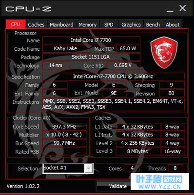 说了这么多,那么海皇戟3的实际性能如何,先来看看各种软件的测试和跑分情况吧。 CPU-Z截图,可以看到此台使用的是台式机的标压版i7-7700。