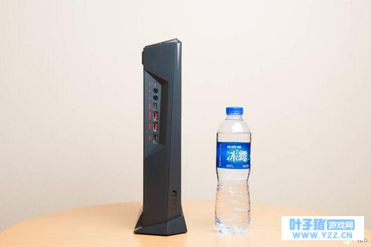 既然主打小体积,先来看一下海皇戟3的体积吧,仅仅比一瓶矿泉水高一点,厚度与瓶身基本一致,同时还支持横向放置,非常适合摆放在客厅中,而瘦高的身形摆在桌面上也是非常和谐的。