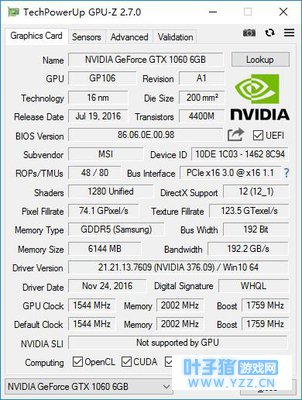 显卡方面为GTX 1060 6GB显卡,微星自家的显卡本来就不错,其推出的主机用显卡当然可以放心的,在待机状态下也是非常静音。