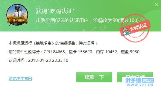 鲁大师跑分也有25W+,还获得了“吃鸡认证”。