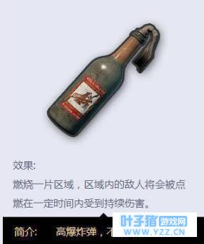 在绝地求生中,相信各位玩家在搜集的时候,往往会遗落到许多的战术道具(投掷物),觉得这些东西毫无用处,但学会合理使用战术道具后,你会发现,想要吃鸡并不需要太刚的枪法,也许只要学会当一名活用的投掷兵就可以了。 TOP3燃烧瓶