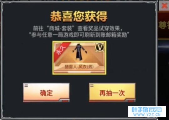 是的,这招就是专门用来抽奖的。要知道春节到了,CF生存特训已经可以抽限定时装了。但是如果你不是欧皇附体的话,目测什么好东西都开不出来。这个绝技可以说也是和人品有关。比如小编我连十连抽都不用,需要一个单抽就能开出猎魔人风衣: